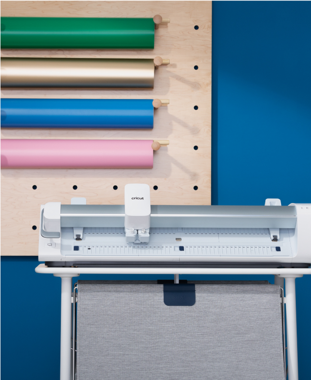 With the Docking Stand, secure your machine and keep your workspace looking sharp. Move it wherever you wish with locking, easy-glide wheels. Built-in roll supports hold rolls of Smart Materials and antistatic catch baskets keep your cuts from touching the floor.