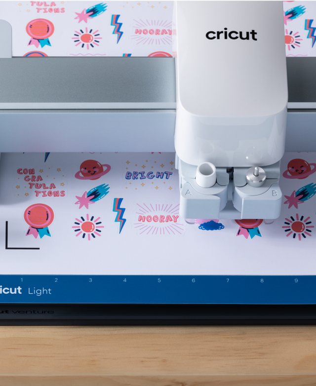 You can make extra-large projects like wall decals, big 3D paper projects, and so much more. Plus, since Cricut Venture can cut repeated images up to 75 ft (22.8 m), making batches of T-shirts or vinyl decals is easier and faster than ever before. You can also make all the popular projects like full-color stickers, personalized apparel, labels, cards, mugs & more.
